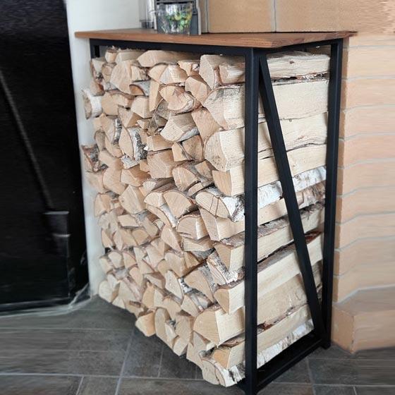 Підставка для дров з металу і деревяною поличкою.Виготовляється на замовлення протягом 1 тижня. Розмір і колір довільний. Матеріал – метал.