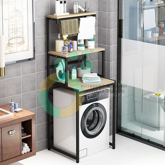 Стелаж з нішею під пральну машину з поличками для різних аксесуарів з надійного металу. Виготовляється на замовлення протягом 2 тижнів. Розмір і колір довільний. Матеріал полиць ЛДСП або дерево (ялина, бук, ясен, дуб).
