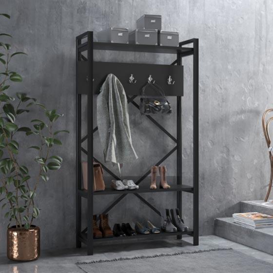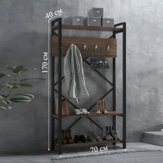 Даний виріб представляє в собі вішалку, підставку для взуття . Виготовляється на замовлення протягом 2 тижнів. Розмір і колір довільний. Матеріал полиць ЛДСП або дерево (ялина, бук, ясен, дуб).