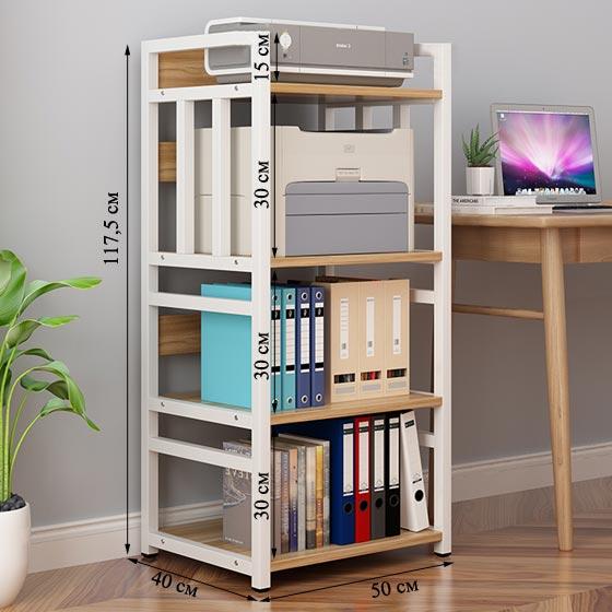 Стелаж офісний для документів і оргтехніки має декілька ярусів. Виготовляється на замовлення протягом 2 тижнів. Розмір і колір довільний. Матеріал полиць ЛДСП або дерево (ялина, бук, ясен, дуб).